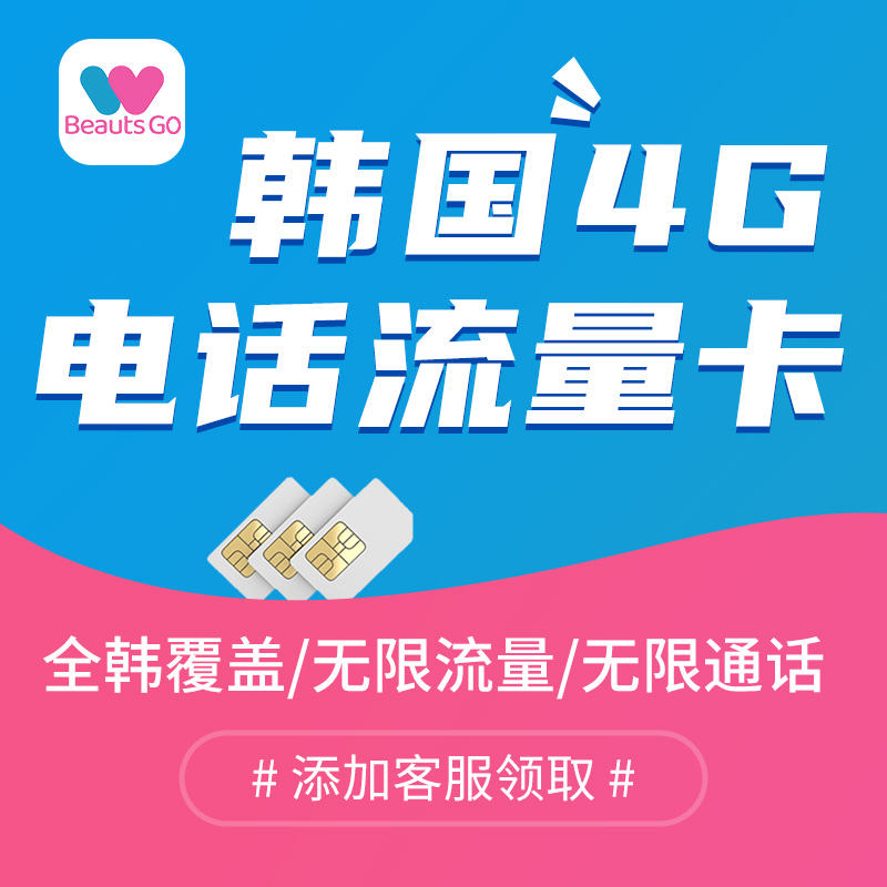 韩国无限流量电话卡套餐内容: 无限4G流量+无限通话+无限短信