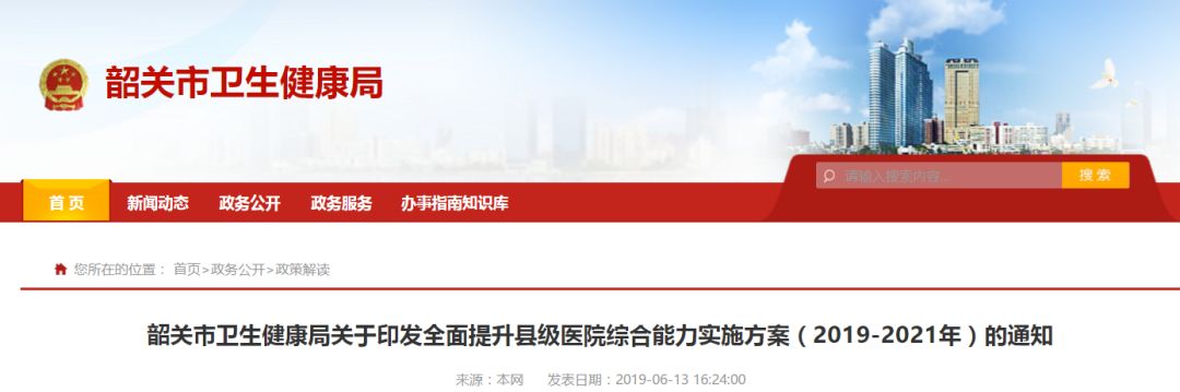 县级医院商场扩容——至2020年,力求县域内住院率到达90%左右,县域内大众90%的疾病留在县域内处理。▍多文件要求进步县级医院昨日(6月13日),广东省韶关市发布全面进步县级医院归纳才能的实施计划(2019-2021年),计划到2020年,力求县域内住院率到达90%左右。据赛柏蓝查询,除县域医共体营建外,近期不少市县均发布