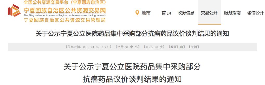 ▍来历:宁夏药品收购中心▍收拾:赛柏蓝-半夏今天(4月24日),宁夏药品收购中心发布《关于公示宁夏公立医院药品会集收购部分抗癌药品议价商洽成果的告诉》。告诉显现,依据自治区药招办《关于商请展开9种抗癌药品会集收购作业的函》作业要求,药品收购中心于2019年4月23日安排展开议价商洽作业,商洽成果为8个药品中只要3